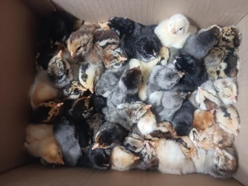 Americauna chicks (Easter Eggers), ready for your brooder or to be placed under your broody hen that wants to be a mama.