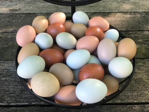 Easter Eggers are a type of chicken that can lay an assortment of colorful eggs.